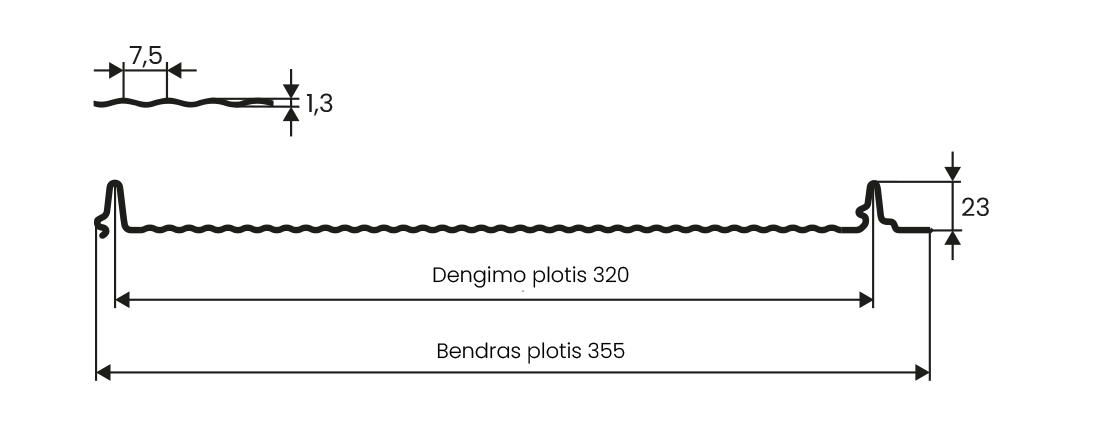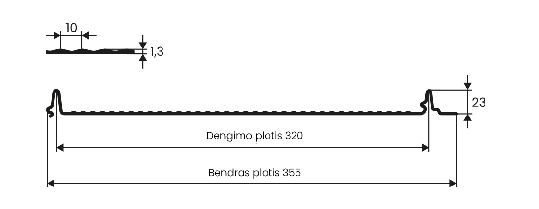 Išilginis profiliavimas pabrėžia klasikinę ir elegantišką stogo dangos išvaizdą. Mikrobangos dar geriau standina lakštą, o tai turi teigiamą poveikį užlankų eksploatacinėms savybėms.