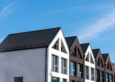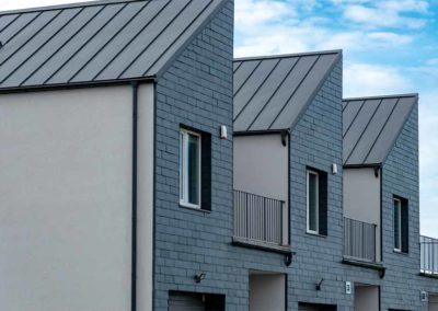 Miesto pakraštyje įkurtas modernių namų gyvenamasis rajonas buvo padengtas Maltos ir Argilla plieno čerpėmis. Paprastas dvišlaitis stogas palengvina greitą stogo dangos montavimą. Nepaisant paprastos pastatų formos, dėl tinkamo architektūrinio dizaino gyvenamasis rajonas atrodo įspūdingai. Stogo danga suteikia pastatams lengvumo ir pabrėžia šiuolaikišką stilių.