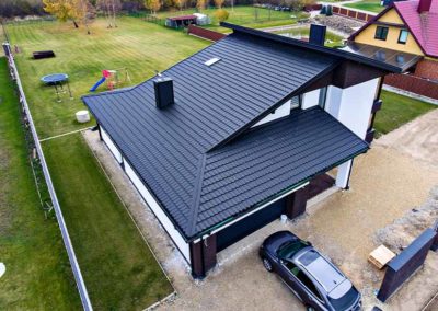 Naujos statybos namas padengtas plieniniu čerpiniu profiliu