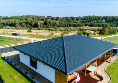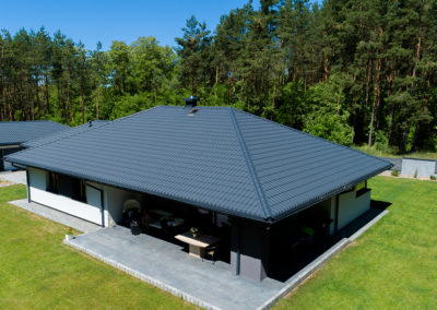 Užmiestyje įsikūręs vieno aukšto vienbutis namas buvo padengtas „Vena“ plieninėmis stogo čerpėmis. Kruopštus stogo dangos montavimas ir tinkamas spalvų pasirinkimas leido sukurti neįprastą vizualinį efektą. Namas atrodo modernus ir elegantiškas.