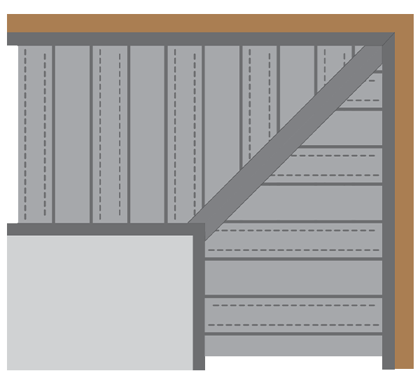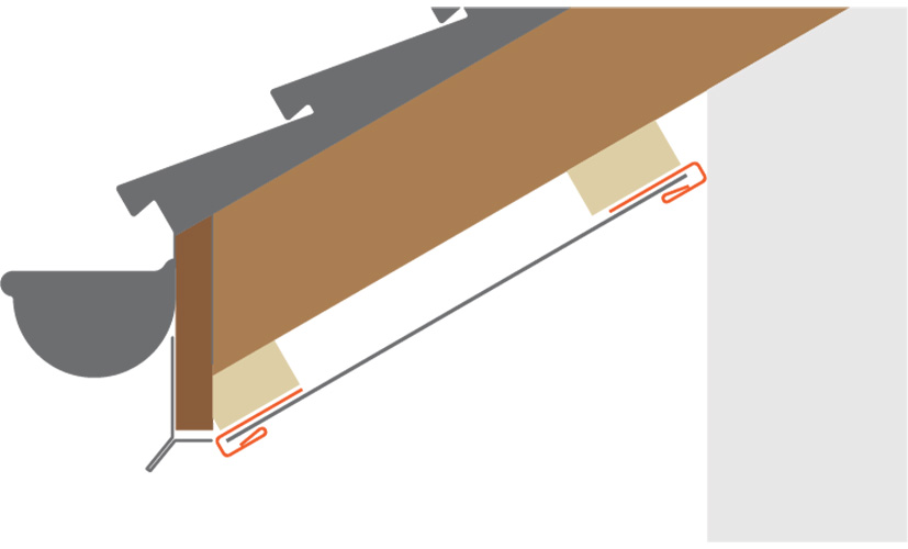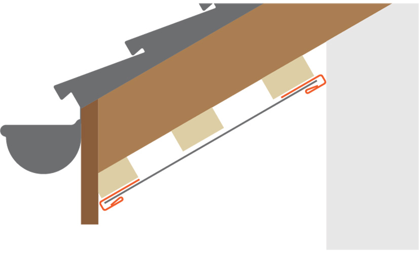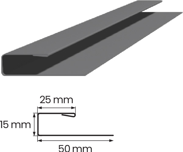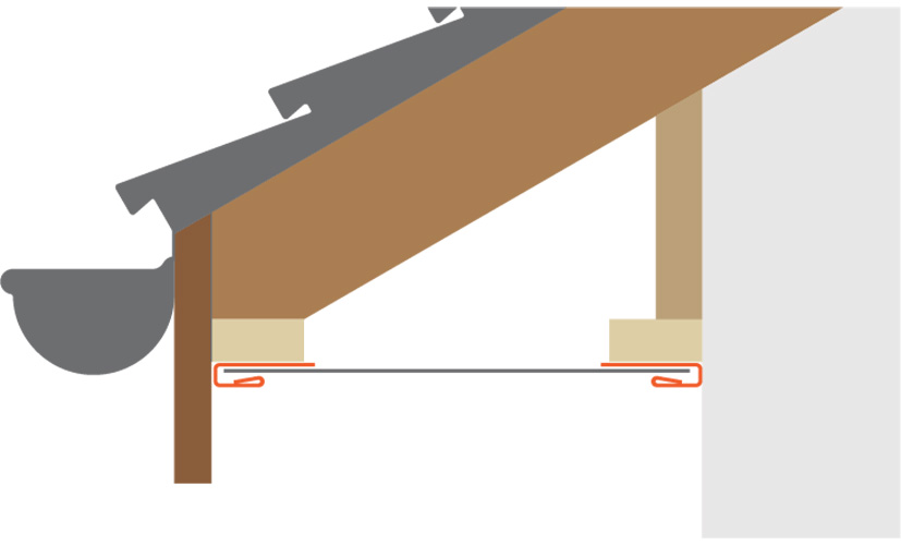 J tipo juosteles tvirtiname prie stogo konstrukcijos perimetro prie lentų. Lubų pakalimo plokštes tvirtiname prie J tipo juostelių maždaug kas 30 cm.